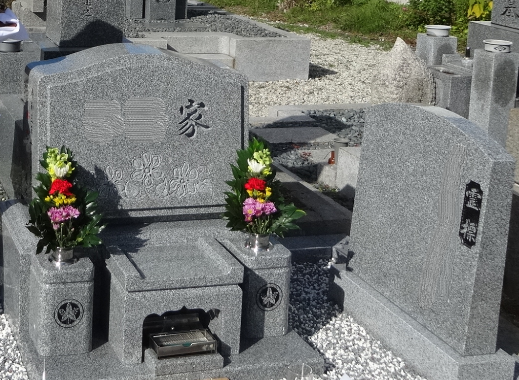 お墓にお花の彫刻を施しました☺